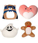 95% polyester/5% elastane. Soft plush toys - white ghost, blue hero bear, light brown gingerbread man and pink heart.Embroidered facial features.White front panel.Height ranges from 23cm up to 25cm.Suitable for vinyl print and sublimation.